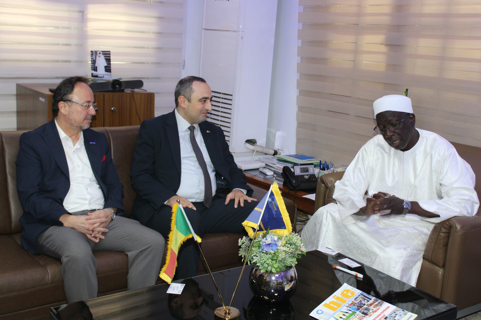 Le secrétaire général adjoint de DEIK a indiqué que le nouveau président du Conseil d’Affaires Turkiye-Sénégal, Ihsan Sahin, compte œuvrer davantage pour le renforcement des relations économiques entre les deux pays. Accompagné par Salih Zeki Erdal et Marcel Ndione tous deux cadres de l’Ambassade de Türkiye, Izzet Dündar a annoncé la tenue prochaine de la Commission Mixte et la visite du président Recep Tayyip Erdogan au Sénégal. Le président de la CCIAD Abdoulaye Sow a salué la démarche bde ce responsable de DEIK. Il suggère de mettre à profit la visite prochaine du président turc au Sénégal pour organiser une mission économique entre les hommes d’affaires des deux pays, avec à la clé des rencontres B to B. Il a rappelé que la CCIAD et DEIK ont déjà signé une convention de partenariat. Reste donc à mettre en œuvre des projets pour booster les échanges entre les deux pays. Dans ce cadre, il a présenté à son hôte turc le projet de construction de l’Académie Consulaire afin de booster les capacités d’accueil du centre de formation professionnelle de la CCIAD. Pour sa part, le vice-président de l’Institution Consulaire Ibrahima Lo a indiqué que le Sénégal peut être une porte d’entrée de la Turquie en Afrique de l’Ouest. Les deux pays peuvent exploiter les opportunités qui existent dans le domaine de l’agriculture, de la transformation des produits (à travers notamment les Agropoles), de l’énergie, des mines, de la construction de logements sociaux, du transport ferroviaire, etc.