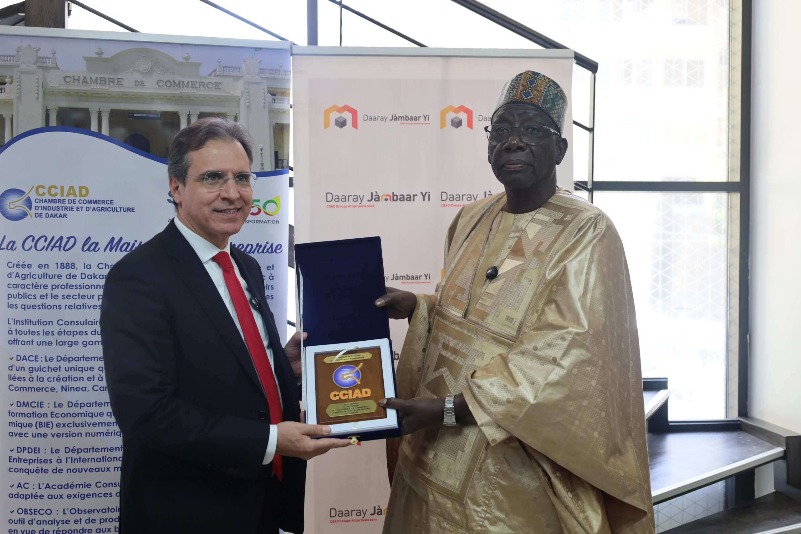 Abdoulaye Sow a également rappelé que la convention entre la CBAO et la CCIAD repose sur une ambition commune : promouvoir un secteur privé national dynamique, compétitif et résilient. Saluant l’approche de la Banque, qui combine services financiers et non financiers, il estime qu’il s’agit d’un modèle pertinent répondant aux besoins des PME et des TPE.
